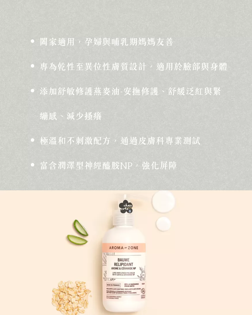 🇫🇷⎮aromazone⎮有機保濕舒敏神經醯胺燕麥乳液-200ml